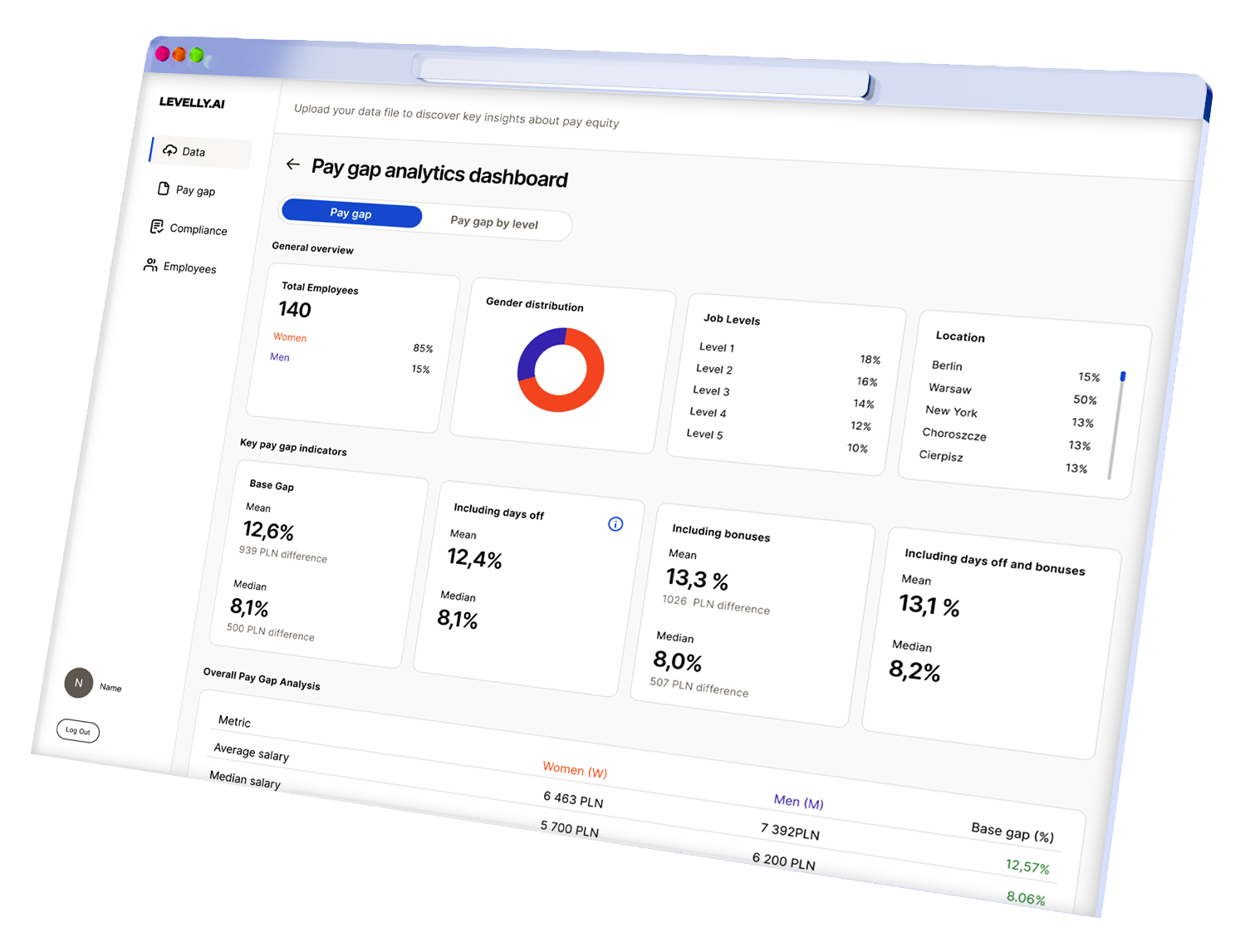 Levelly.ai helps HR and Total Rewards teams uncover, monitor, and close pay gaps with real-time analytics